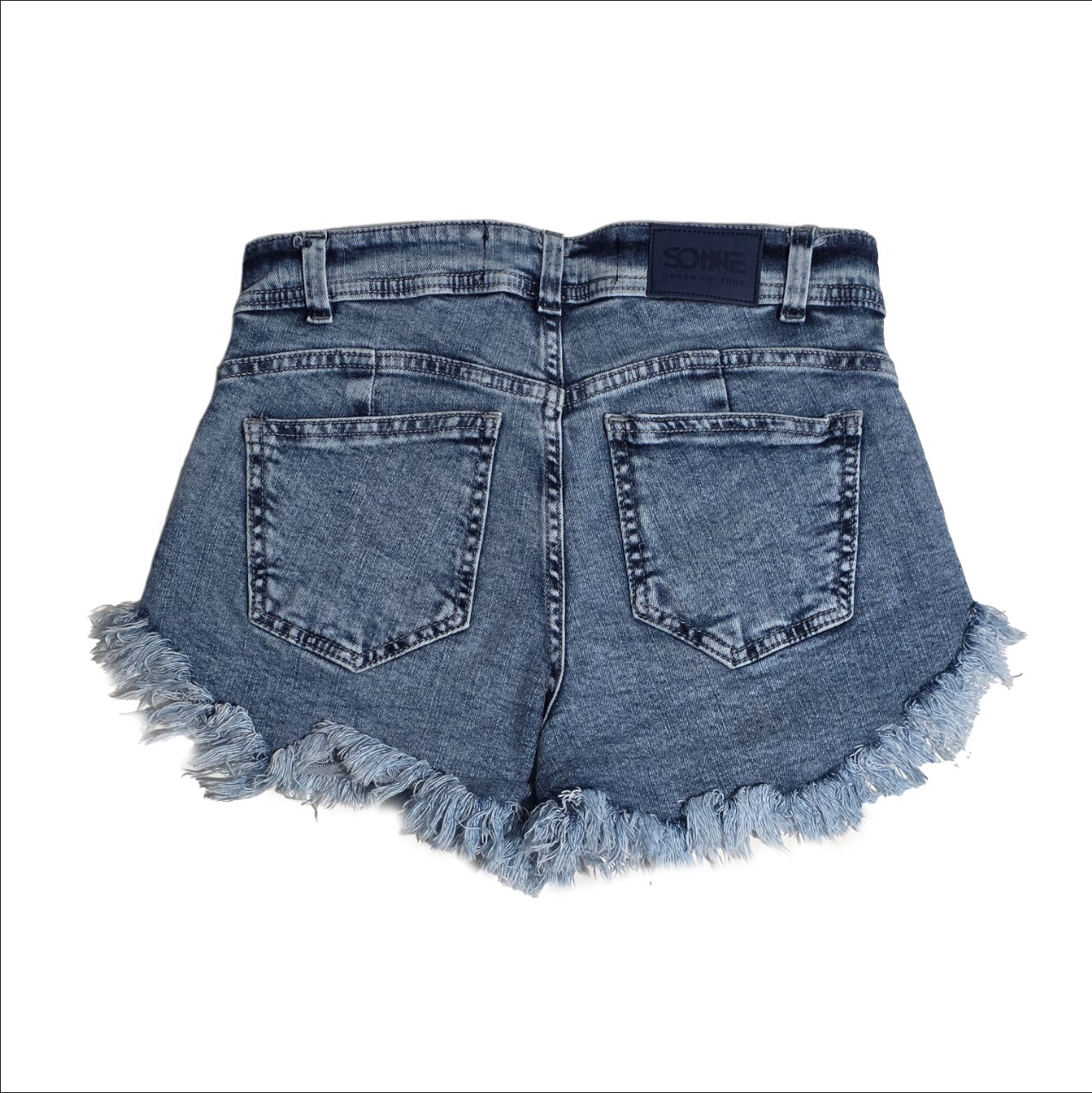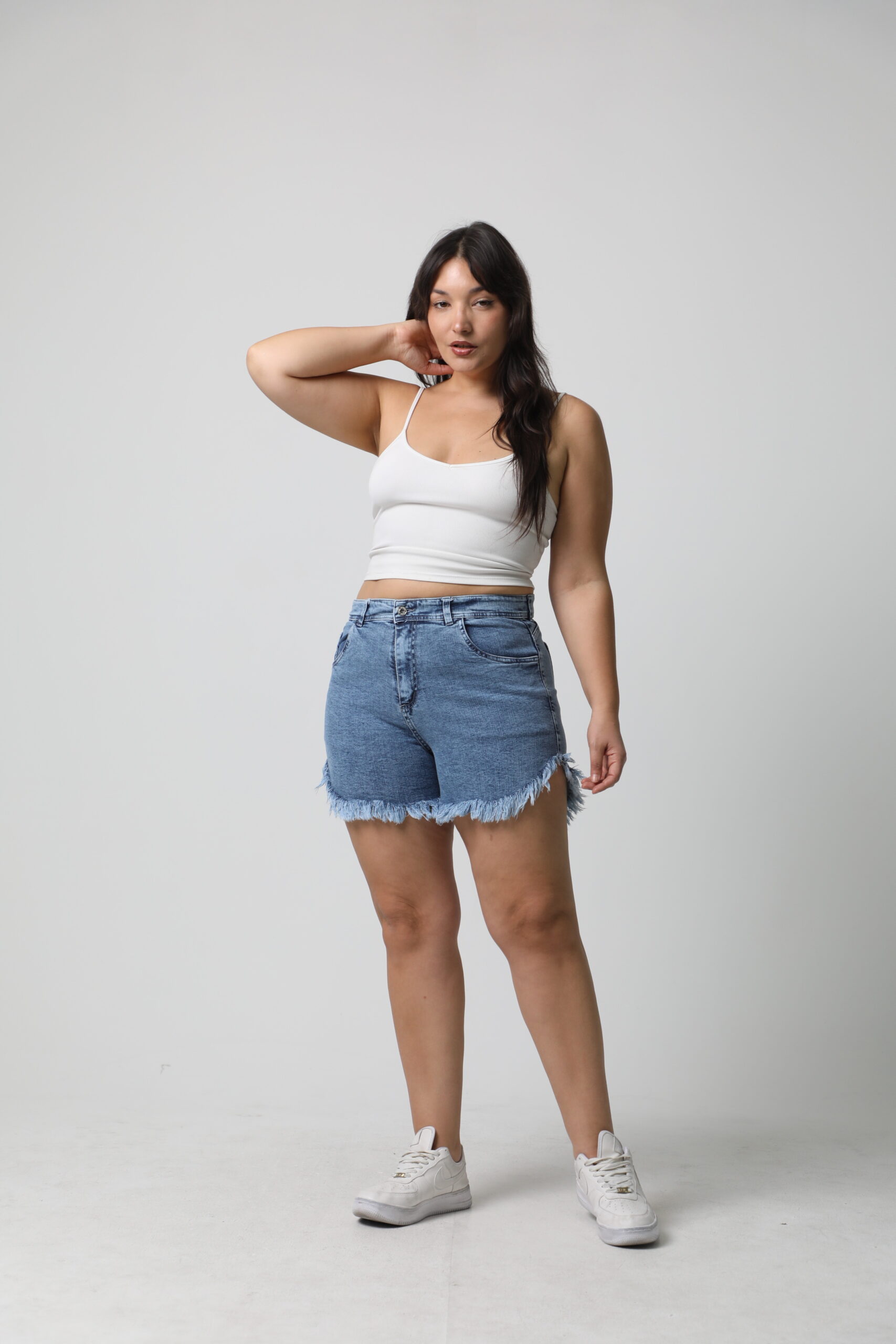 Color: Negro gastado. La modelo viste: Talle 48. Largo de la entrepierna: 5 cm (36 al 44) 13 cm (46 al 60) Modelo: Short. Altura de la cintura: Alta. Bolsillos: tiene 2 bolsillos funcionales delanteros y 2 bolsillos funcionales traseros. Material: Jean. Cierre: Boton y cremallera.